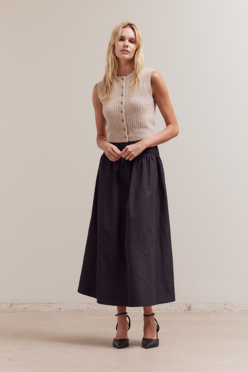 This slim-fit, button-up, sleeveless sweater vest with a cropped silhouette is a timeless essential.