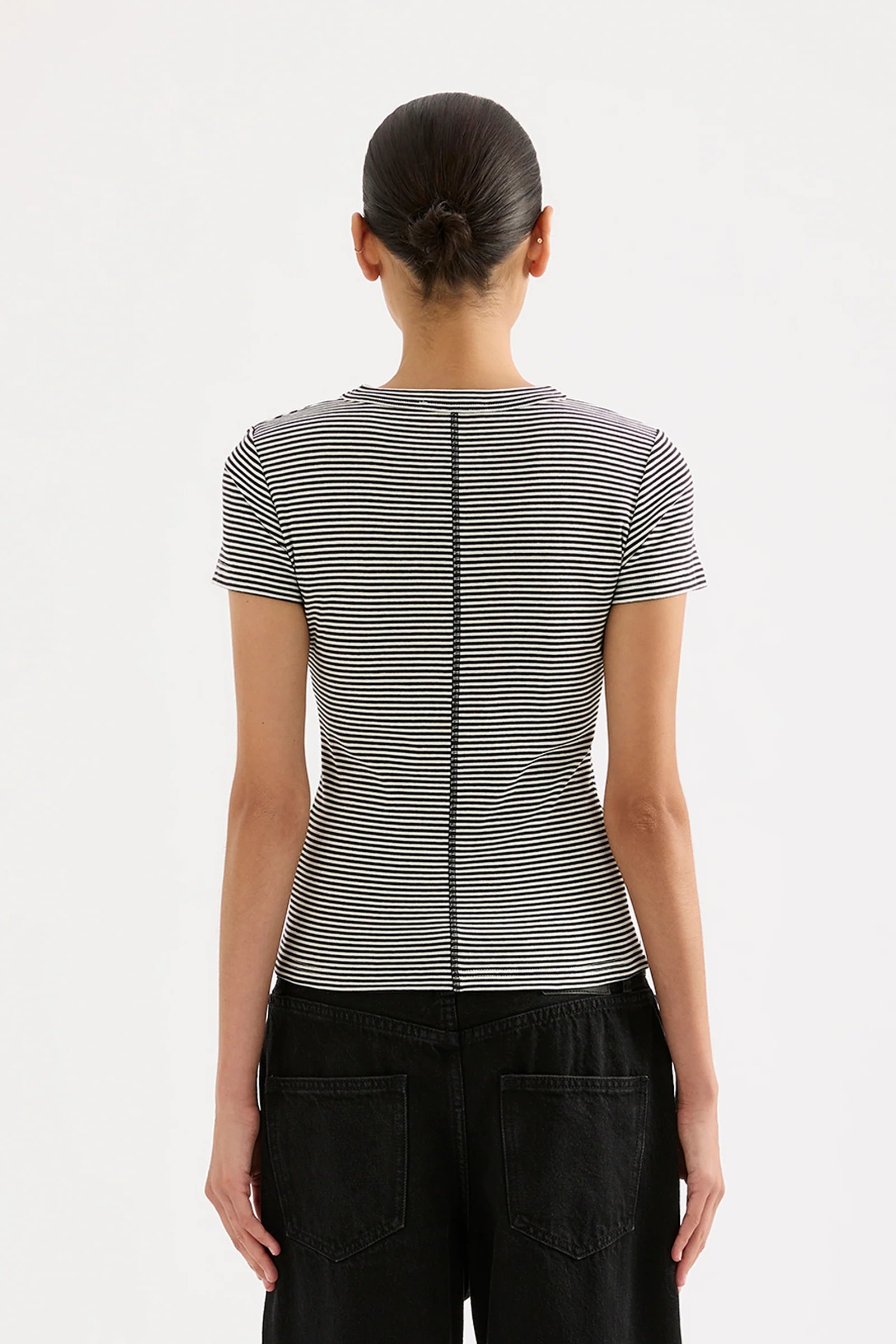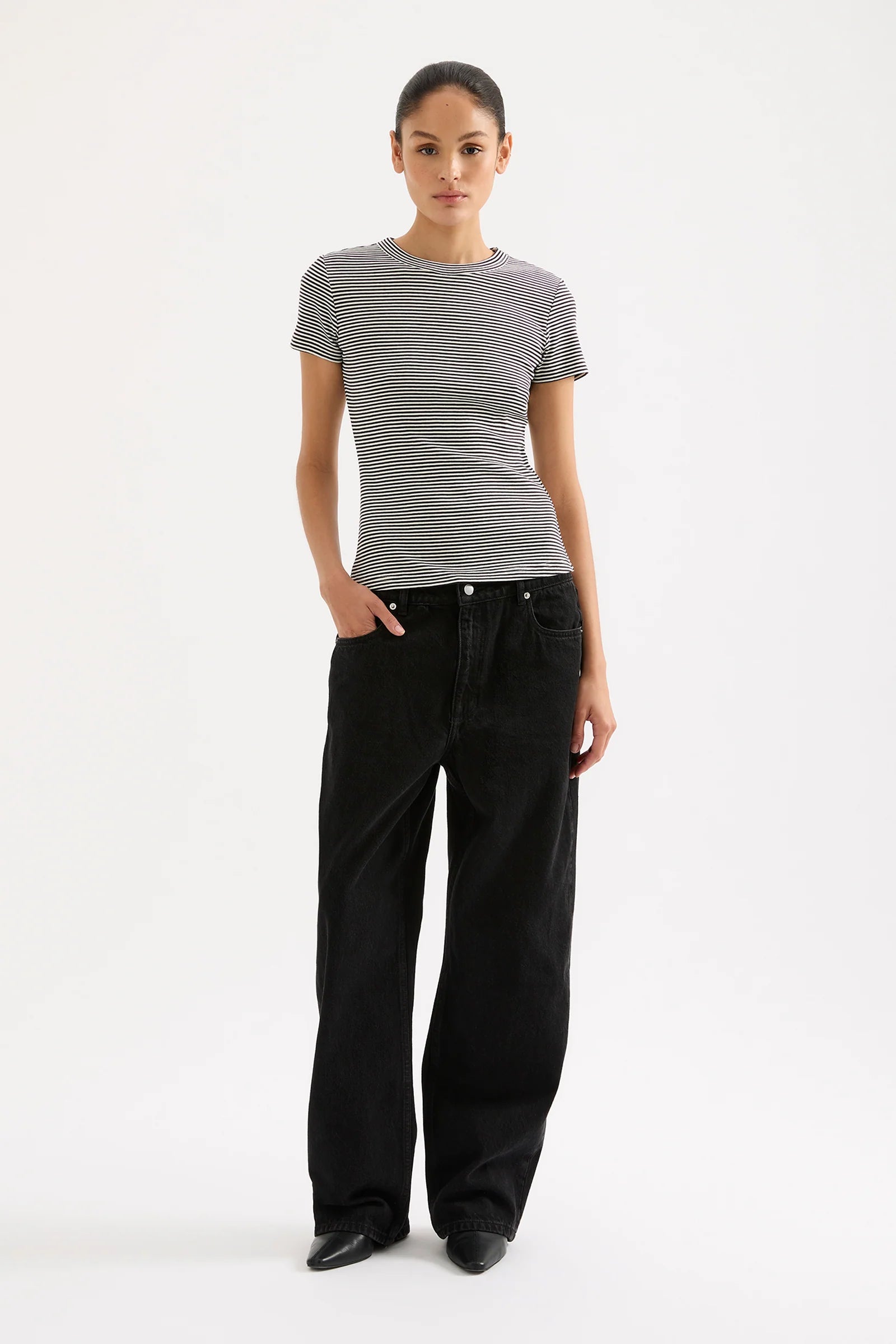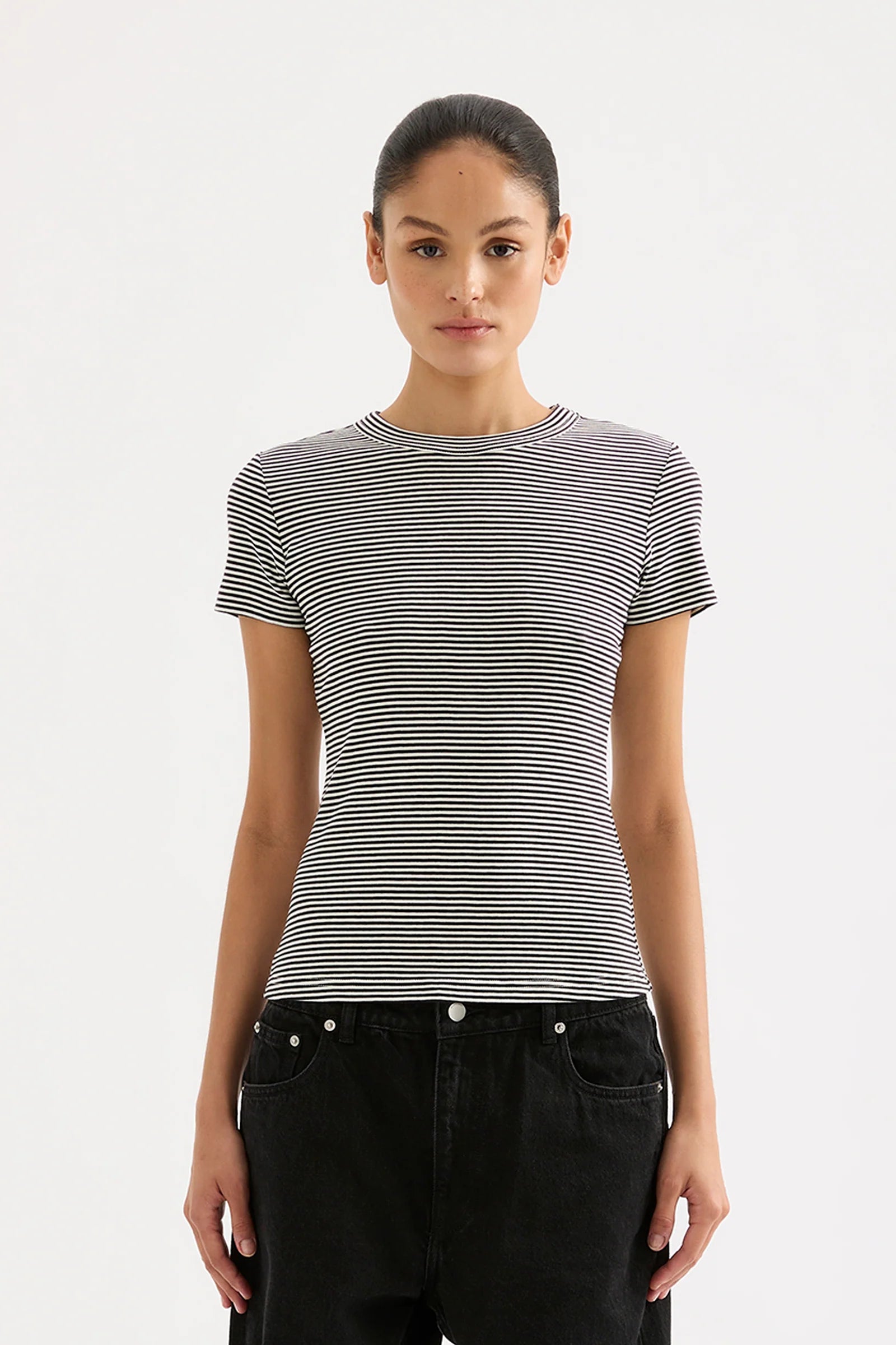 The Organic Baby Tee is made from a lightweight organic cotton jersey, which has a soft, breathable hand feel. The silhouette is a flattering close fit and finishes at the hips. Features include a crew neck, and short, fitted sleeves.